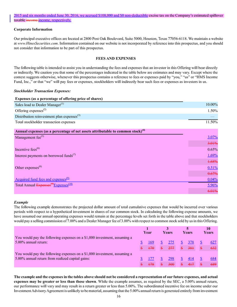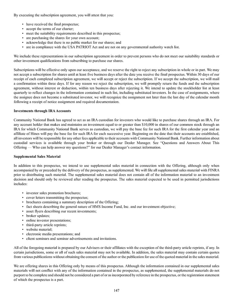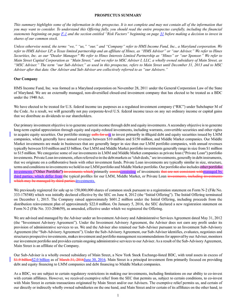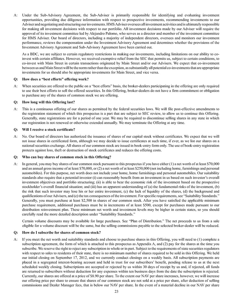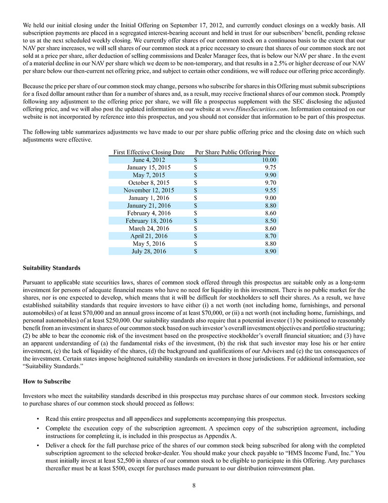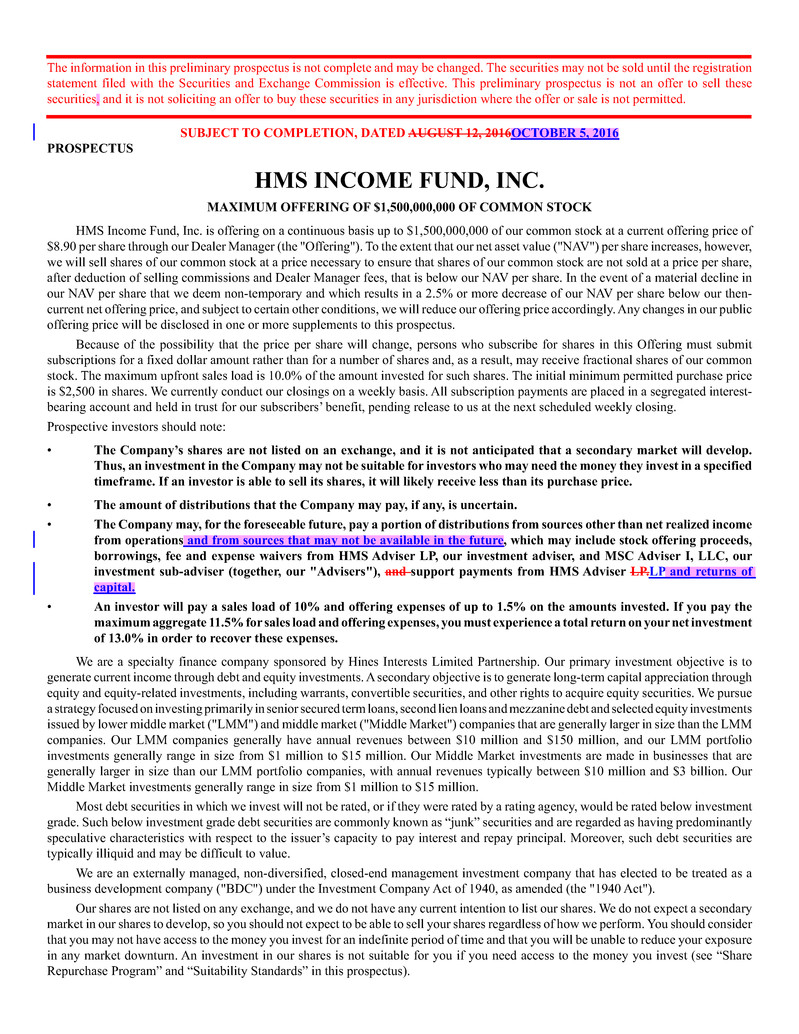 HMS Income Fund, Inc. is offering on a continuous basis up to $1,500,000,000 of our common stock at a current offering price of