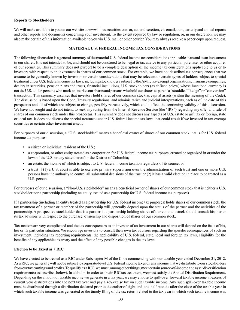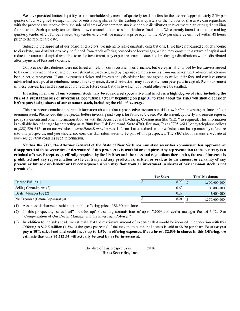 We are a specialty finance company sponsored by Hines Interests Limited Partnership. Our primary investment objective is to
