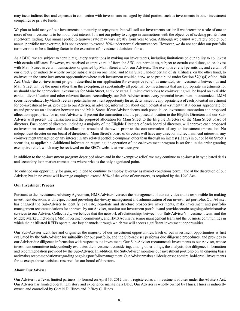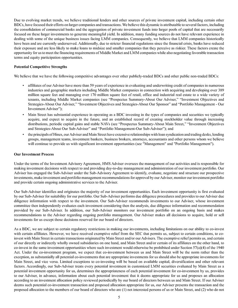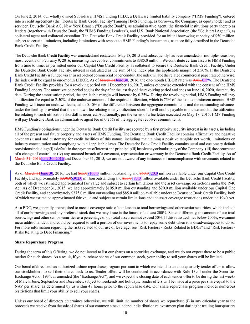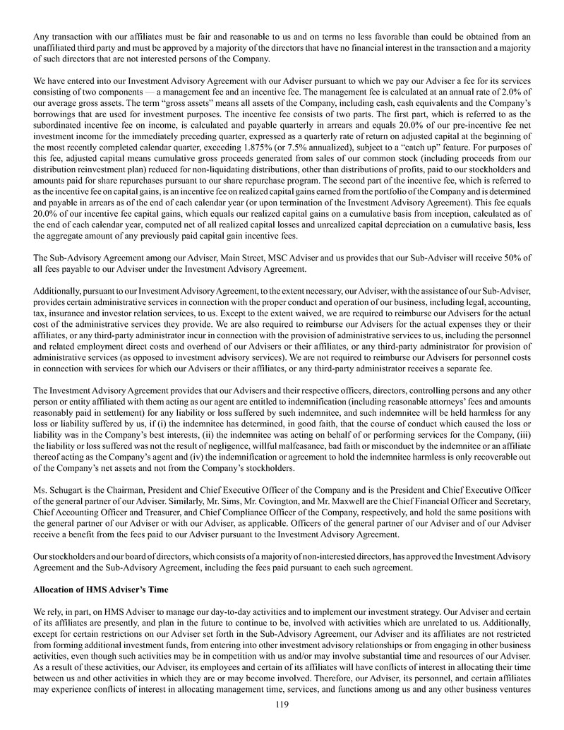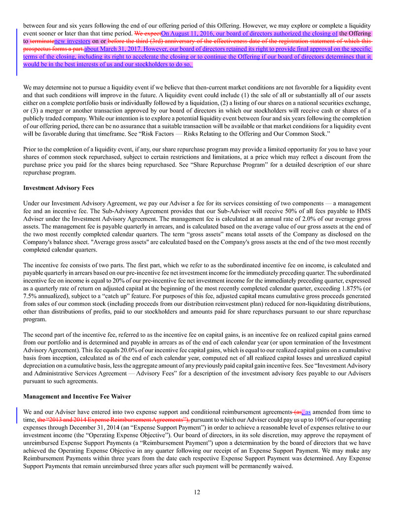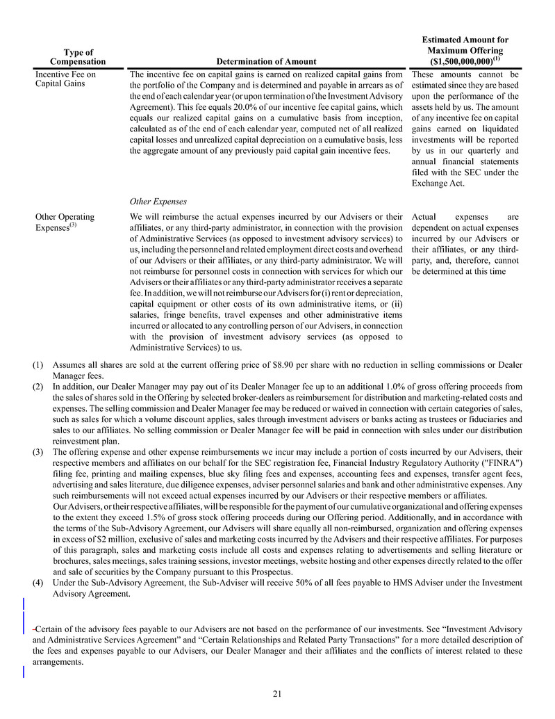 investment sub-adviser (together, our "Advisers"), and support payments from HMS Adviser LP.LP and returns of