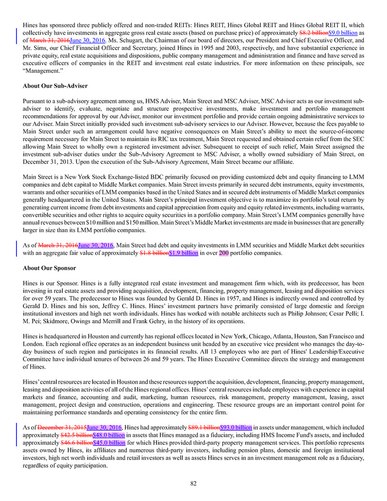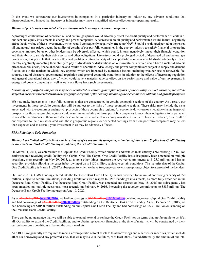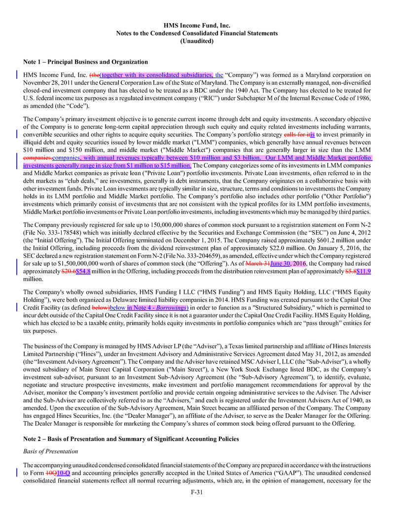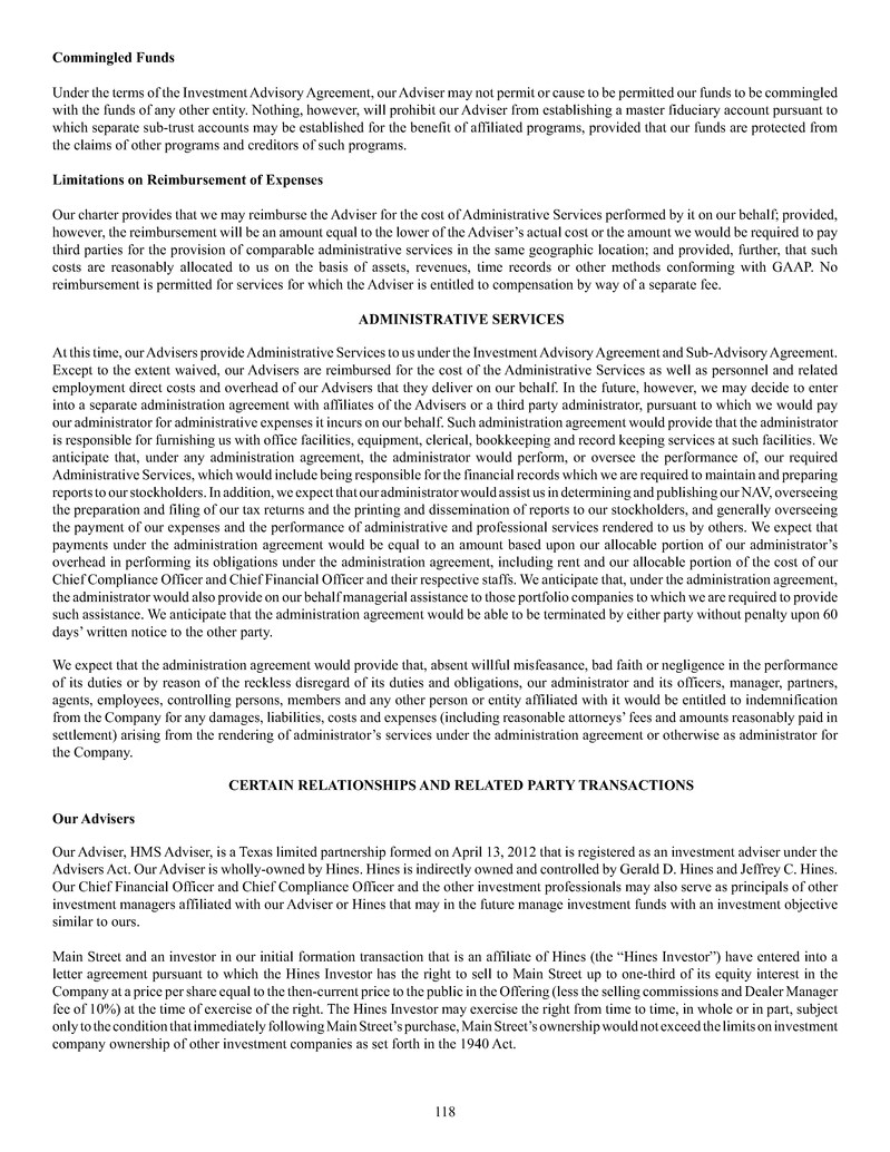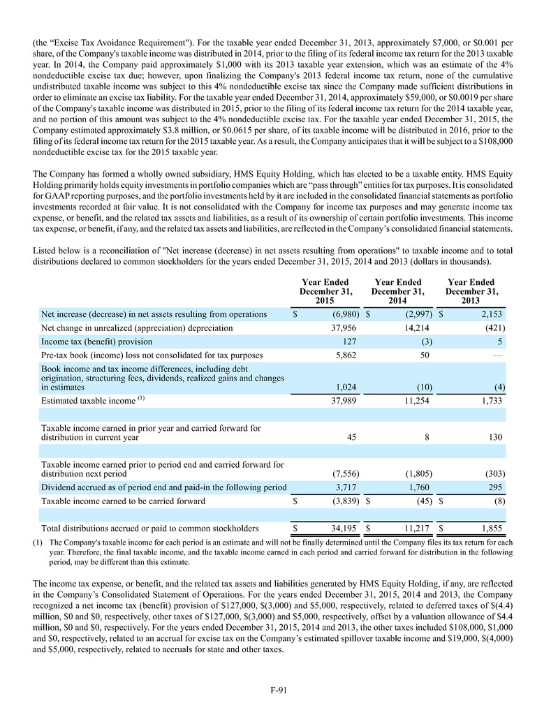 investment sub-adviser (together, our "Advisers"), and support payments from HMS Adviser LP.LP and returns of