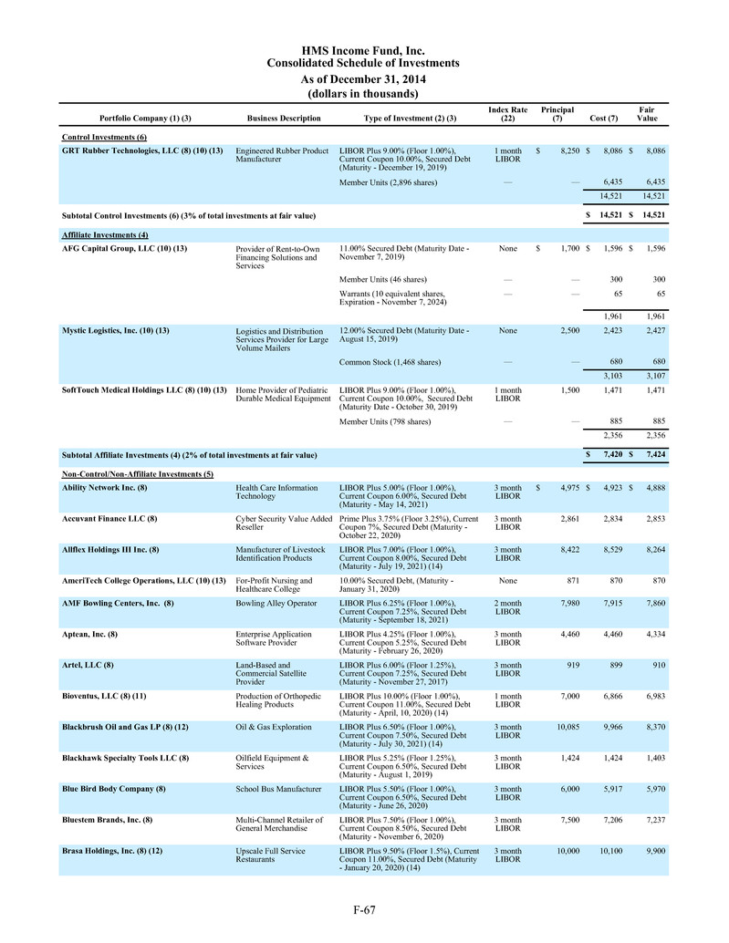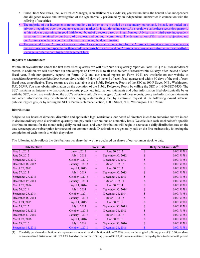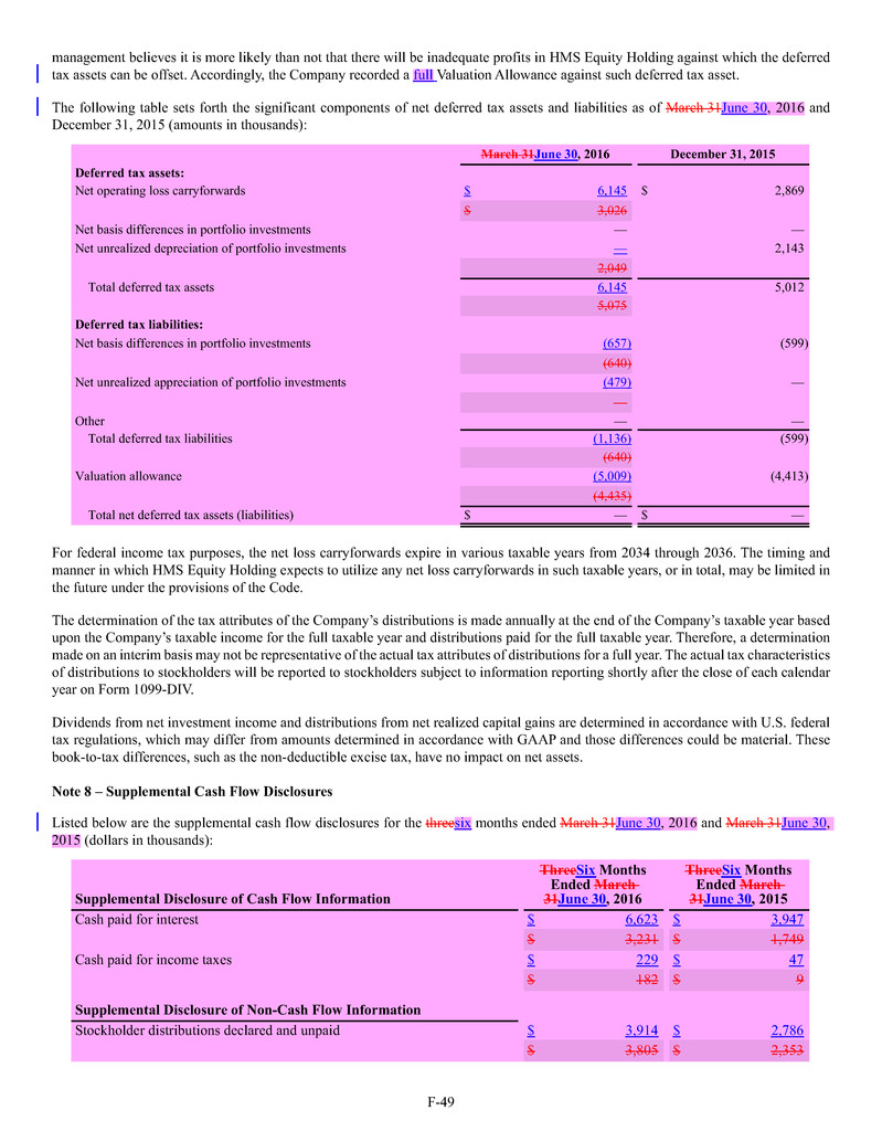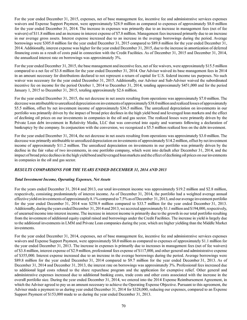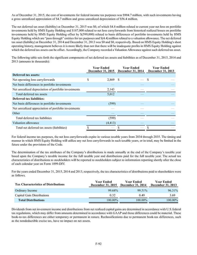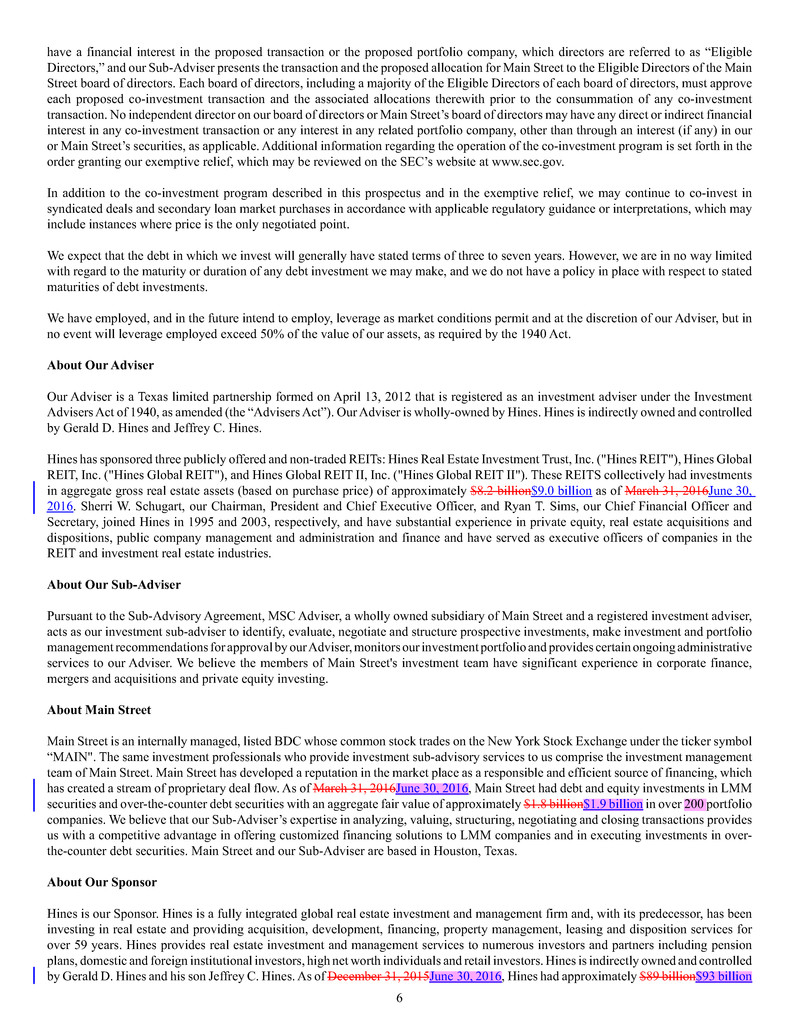 investment sub-adviser (together, our "Advisers"), and support payments from HMS Adviser LP.LP and returns of