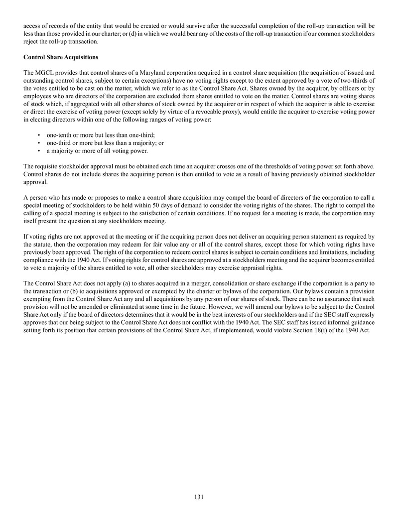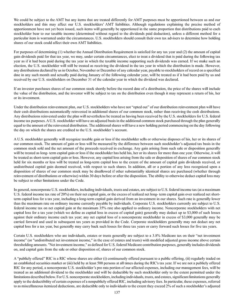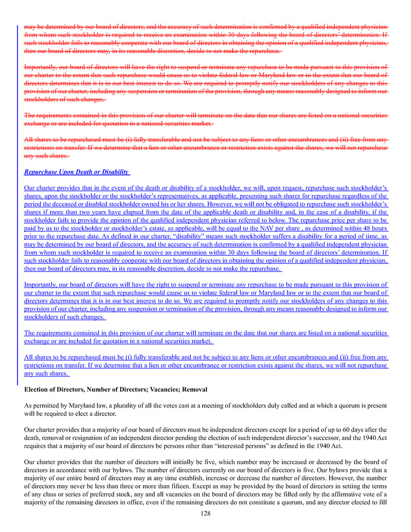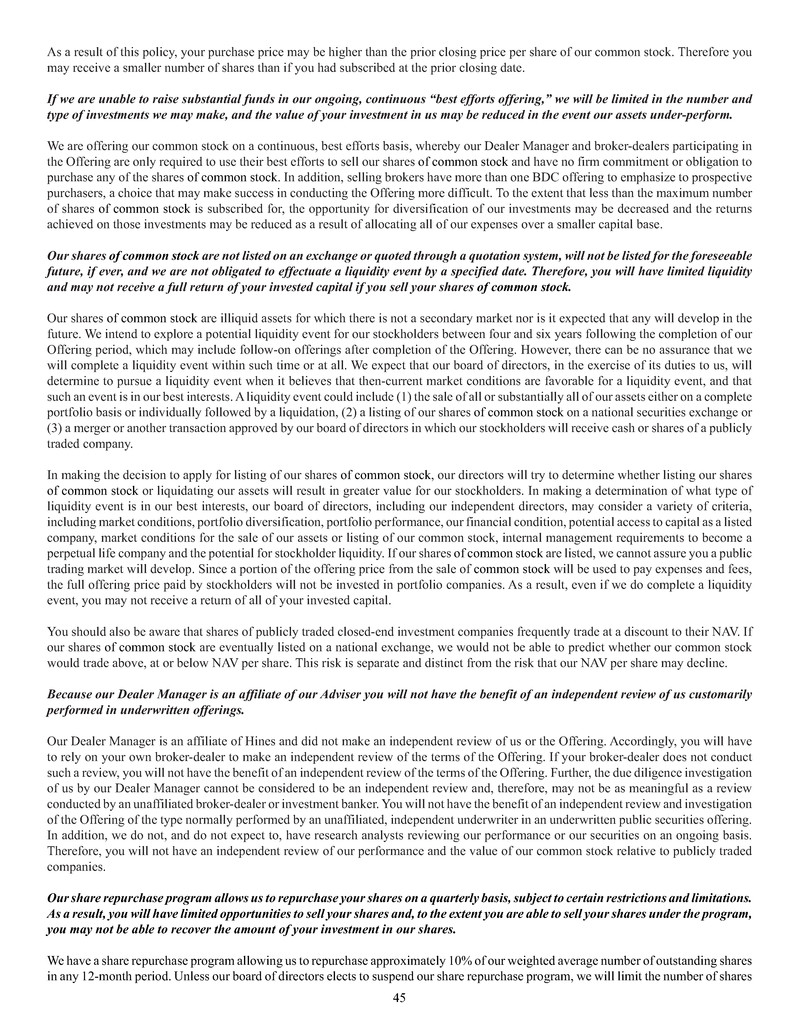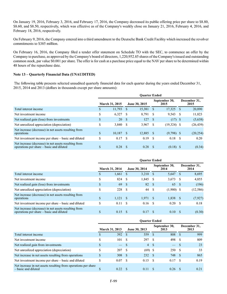 quarterly tender offers for our shares. Any tender offers will be made at a price equal to the NAV per share determined within 48 hours