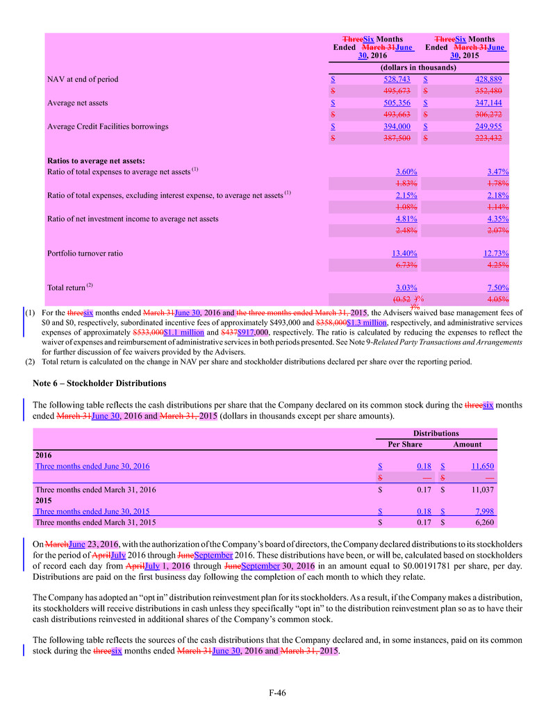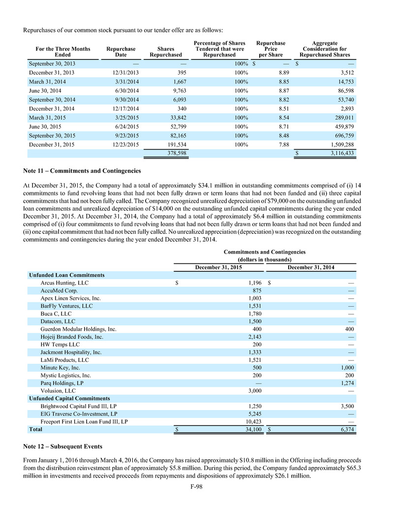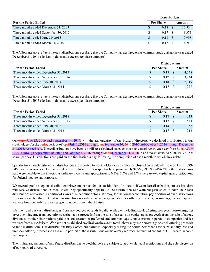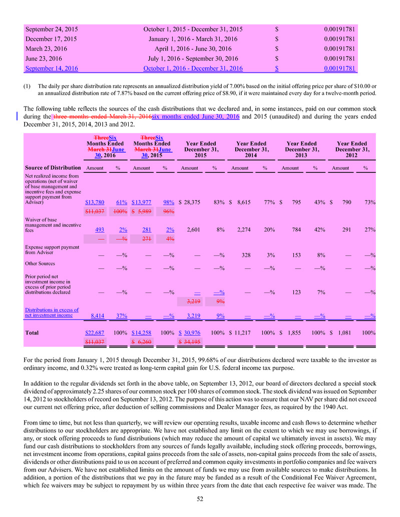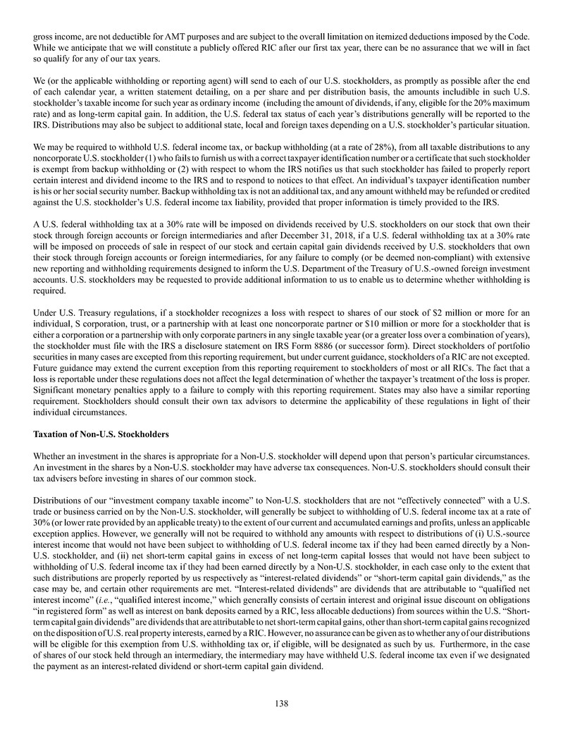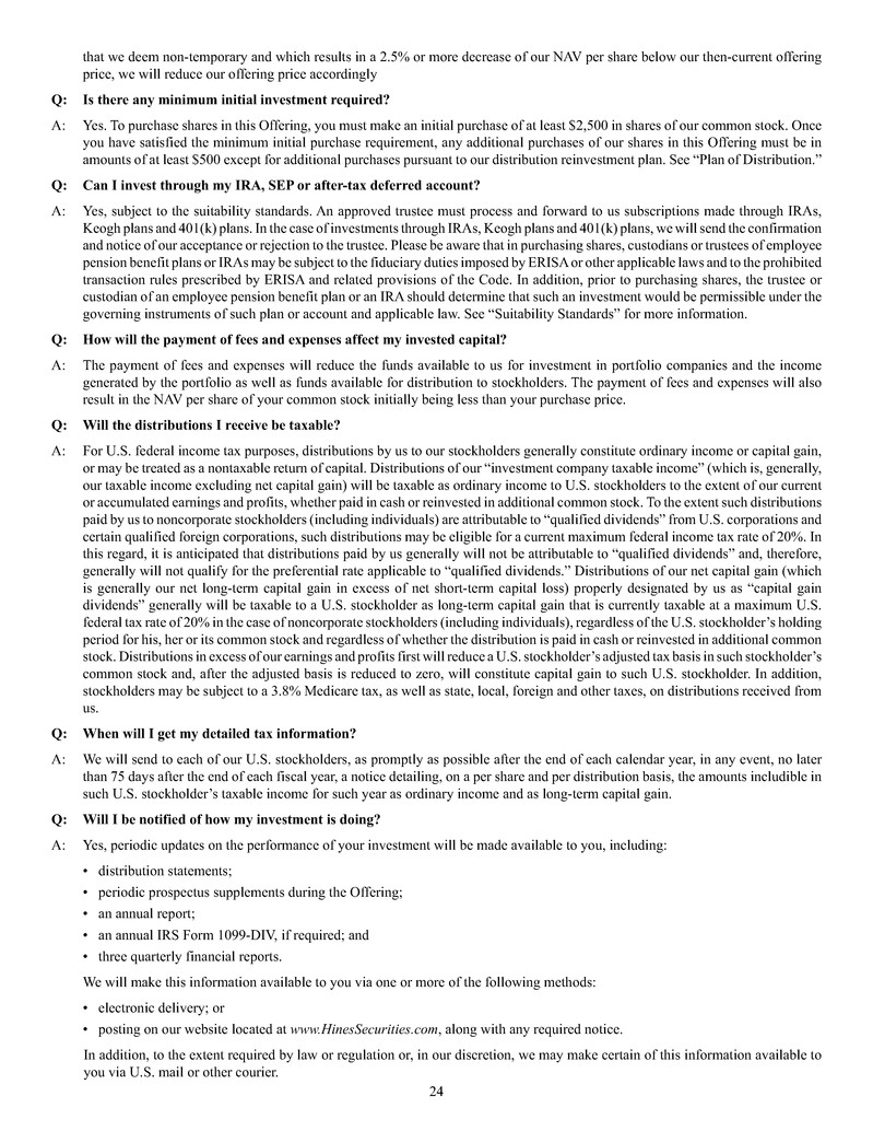 quarterly tender offers for our shares. Any tender offers will be made at a price equal to the NAV per share determined within 48 hours