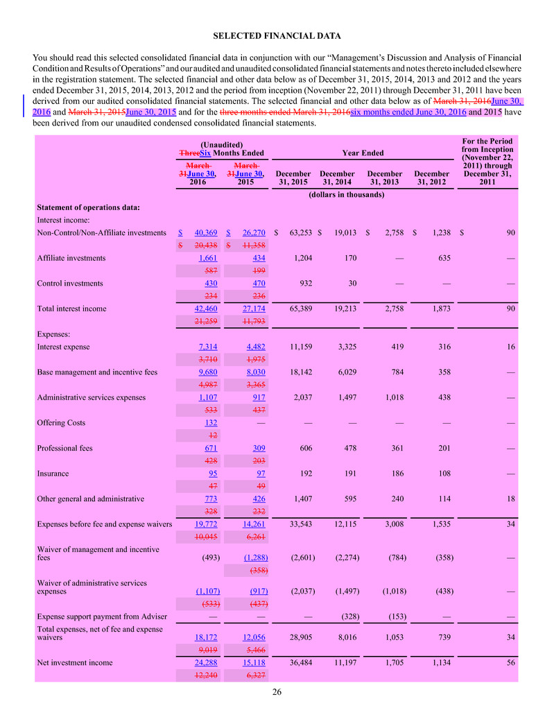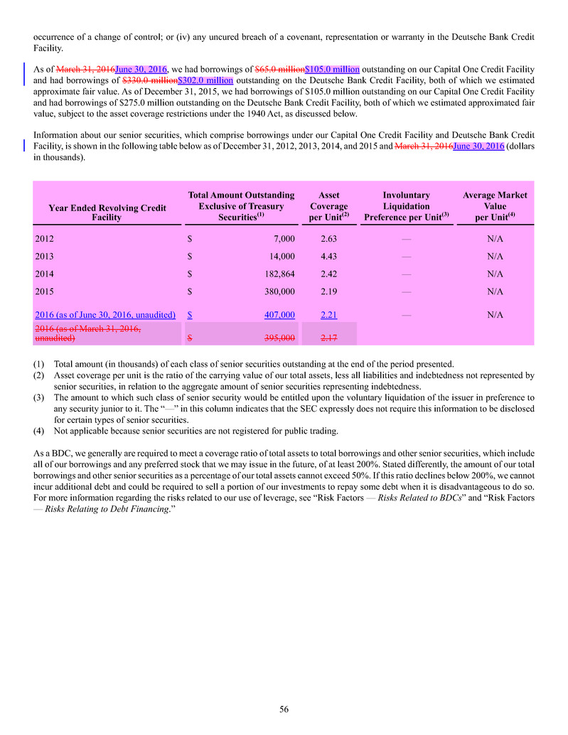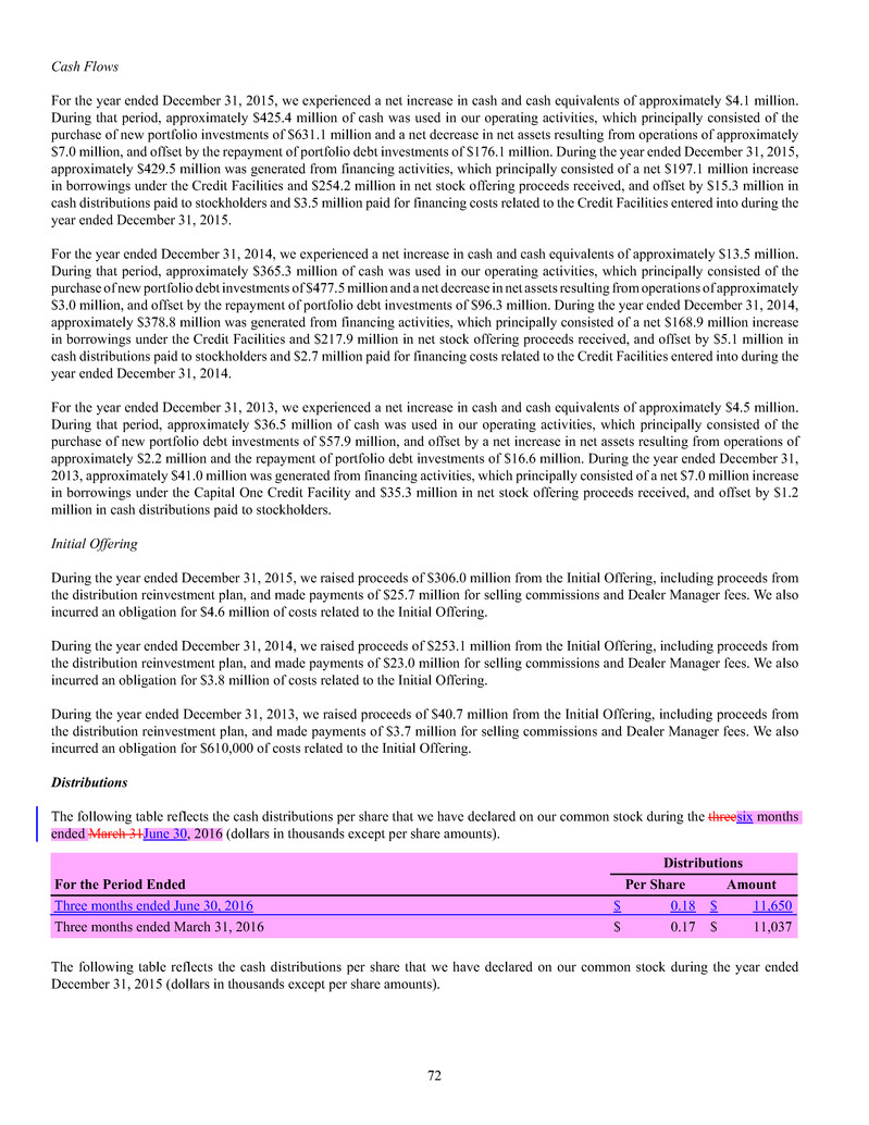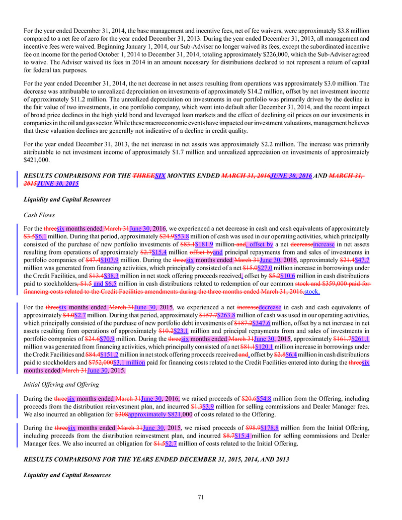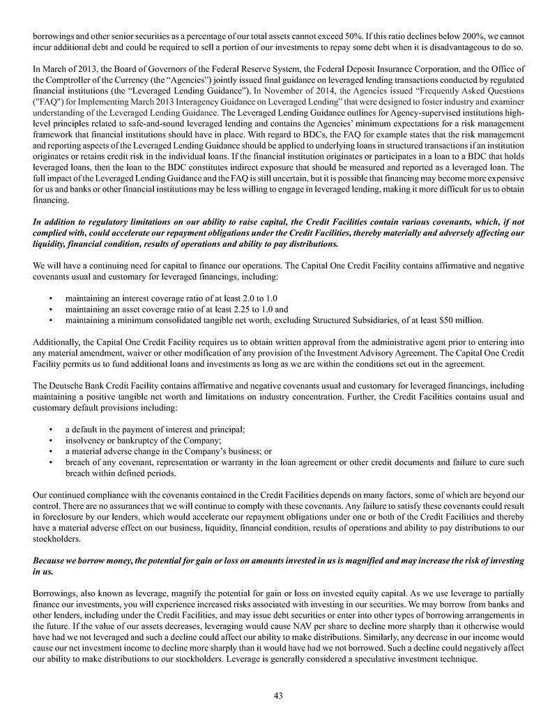 borrowings, fee and expense waivers from HMS Adviser LP, our investment adviser, and MSC Adviser I, LLC, our