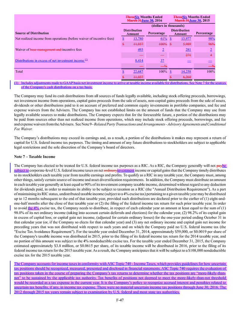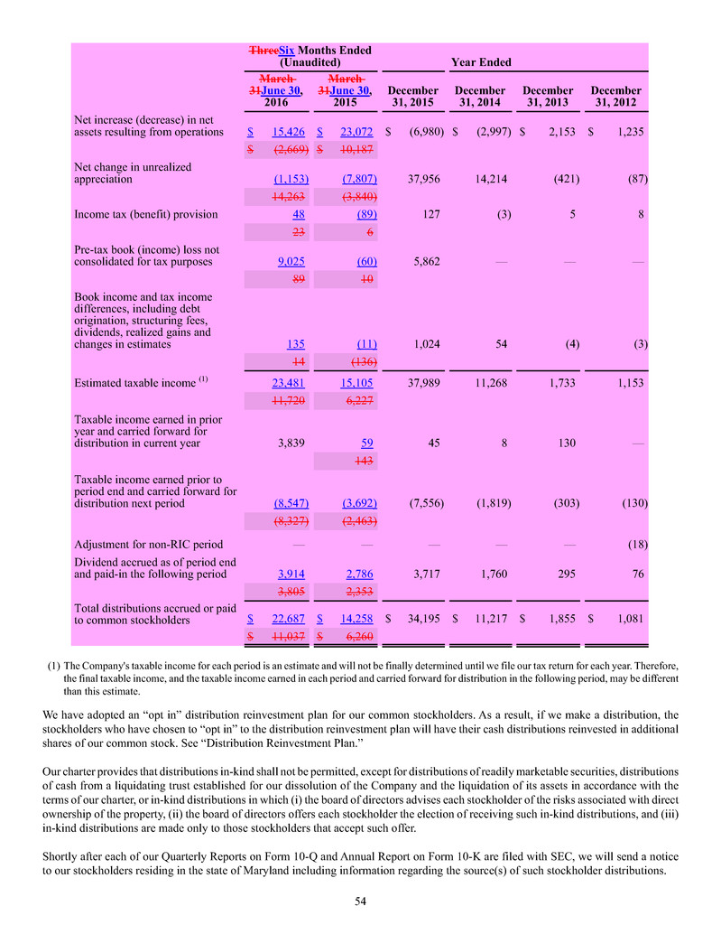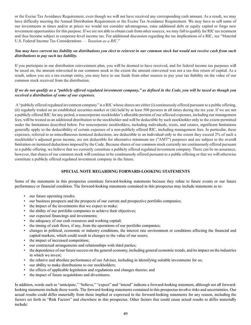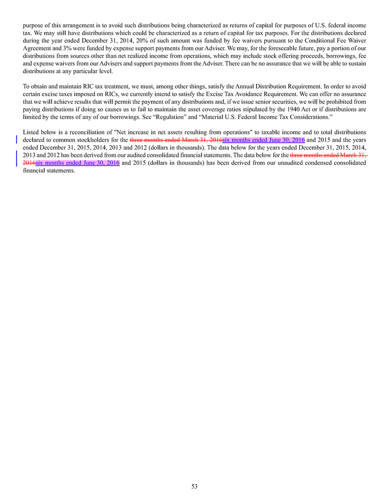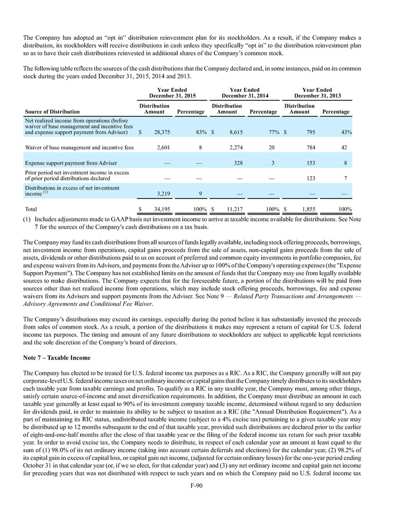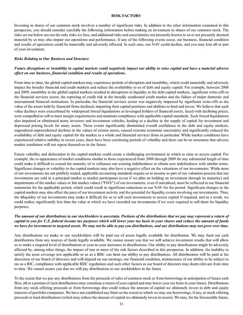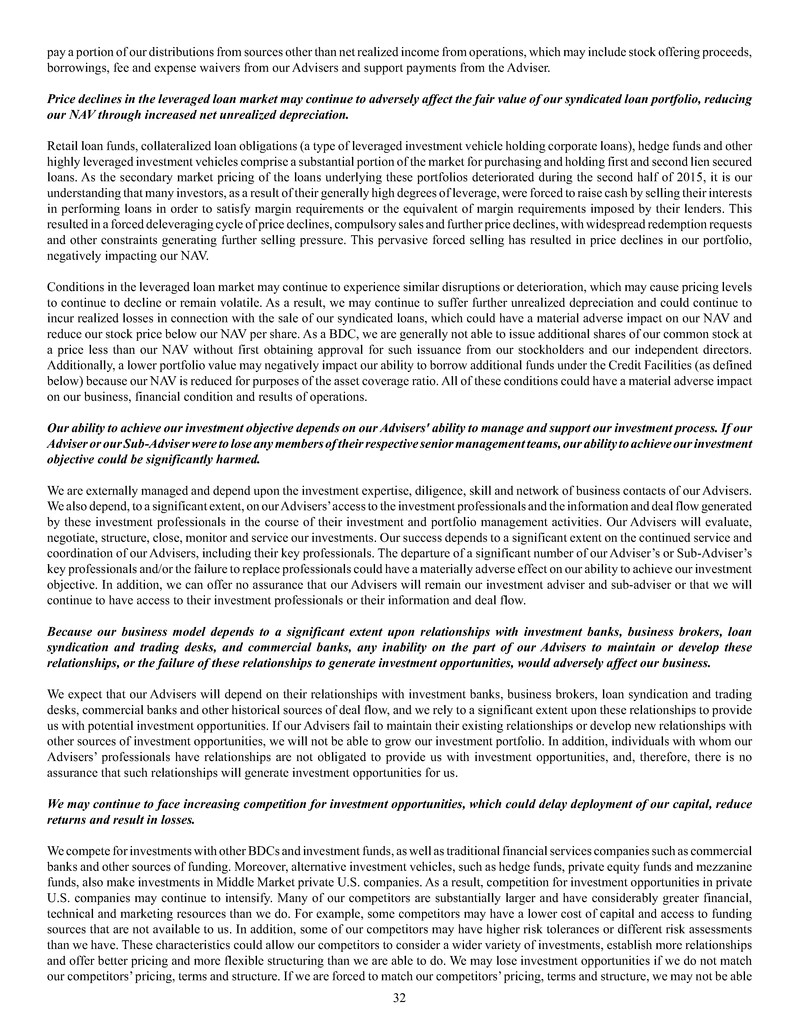 • The Company may, for the foreseeable future, pay a portion of distributions from sources other than net realized income