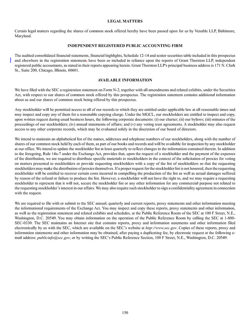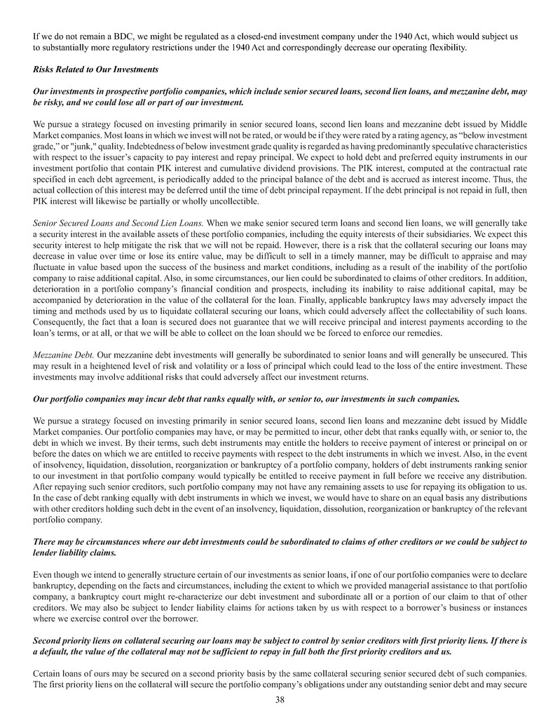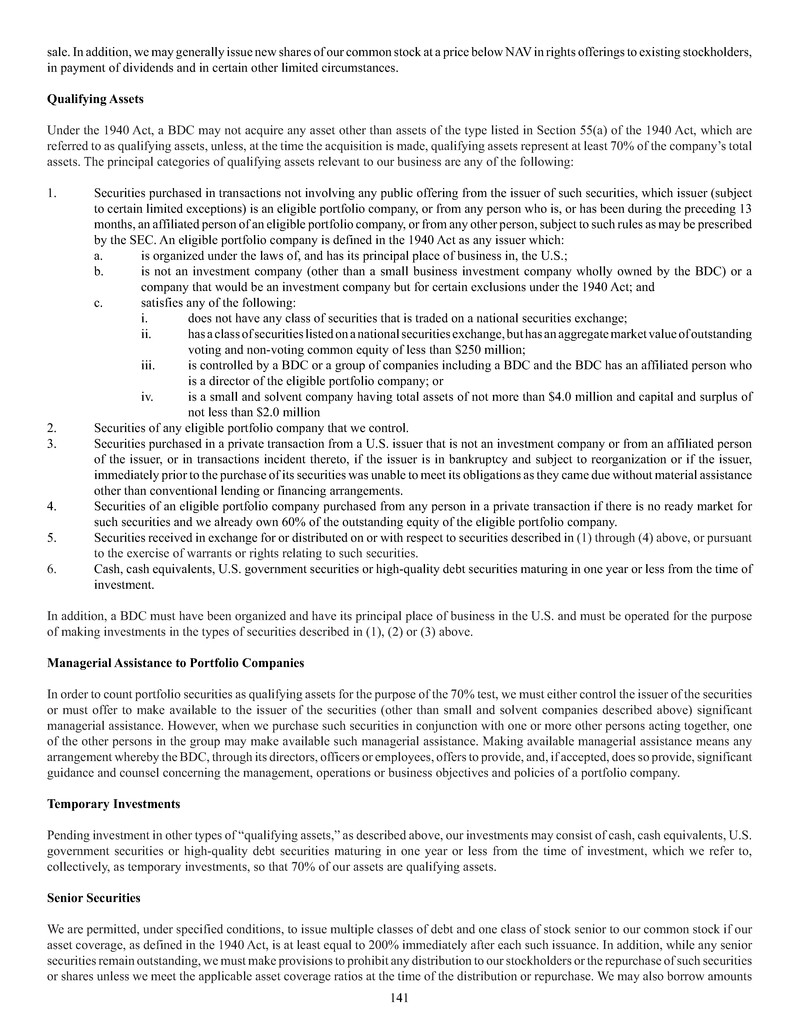 business development company ("BDC") under the Investment Company Act of 1940, as amended (the "1940 Act").