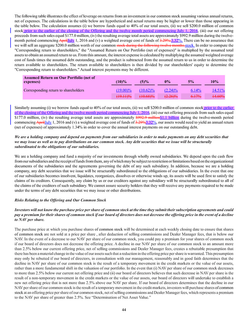 (ii) our net asset value increases to an amount greater than our net proceeds as stated in the prospectus.