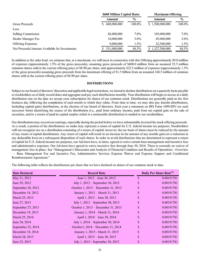 maximum aggregate 11.5% for sales load and offering expenses, you must experience a total return on your net investment