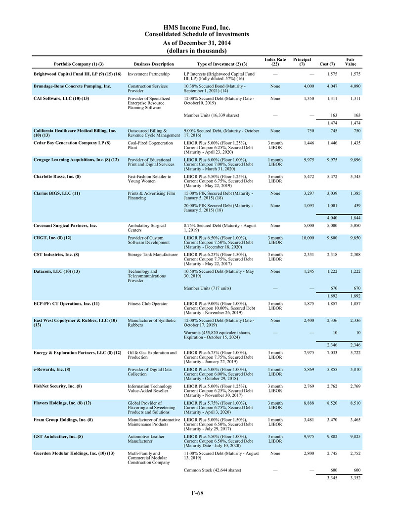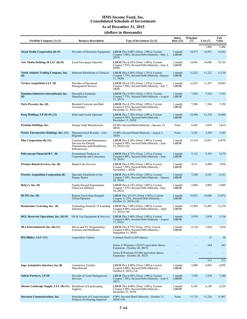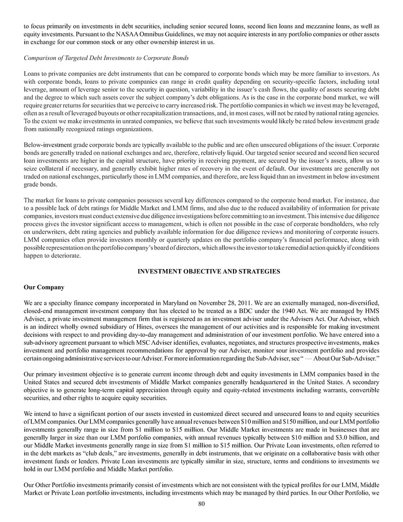 of HMS Adviser LP (SEC File No. 801-76585) and MSC Adviser I, LLC (SEC File No. 801-78919).