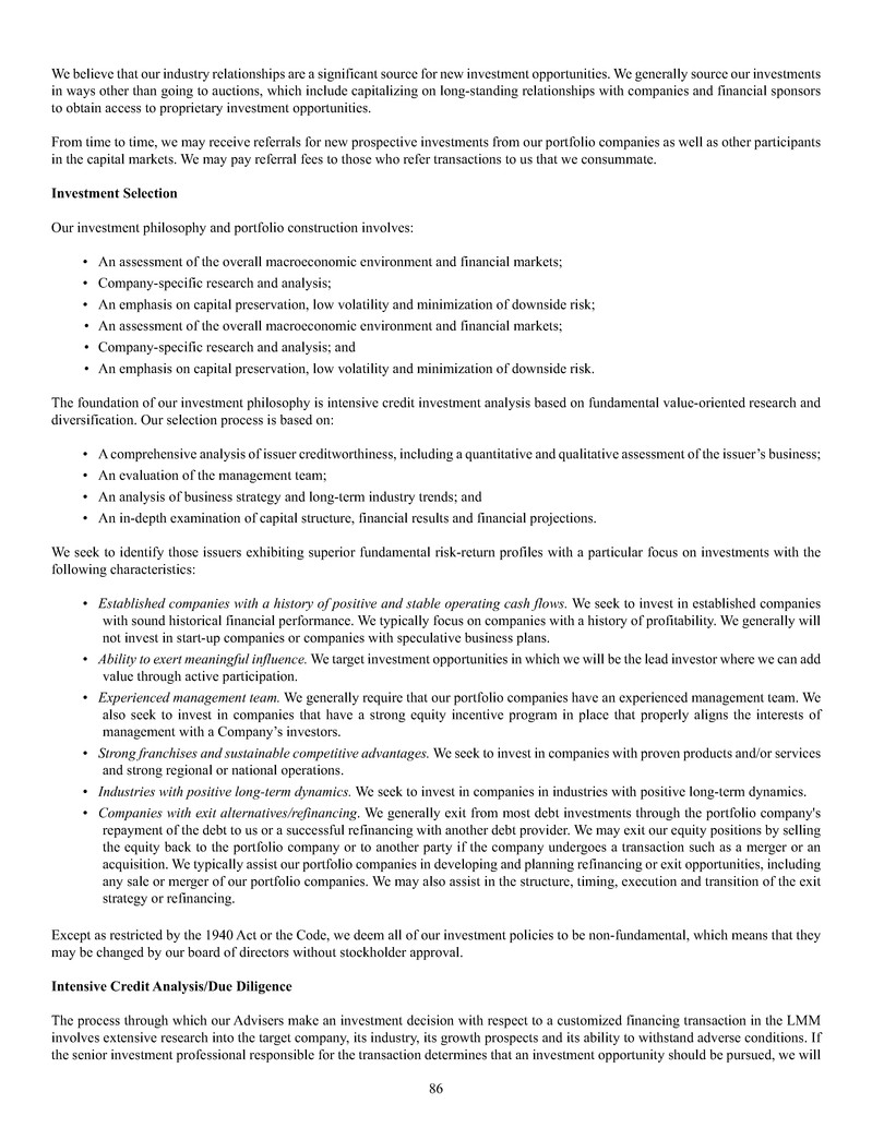 generally larger in size than our LMM portfolio companies, with annual revenues typically between $10 million and $3 billion. Our