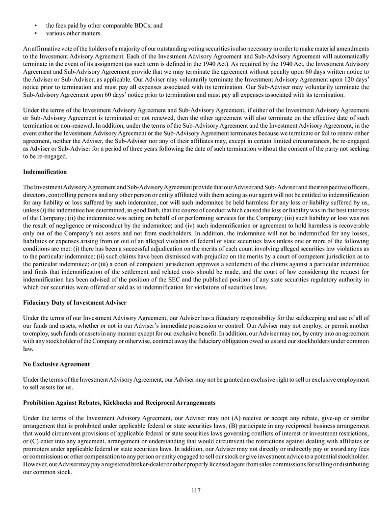 Agreement.” Additional information regarding our Adviser and our Sub-Adviser is set forth in their respective Form ADVs, as filed with
