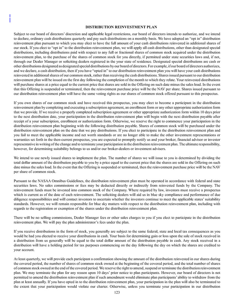 with the proceeds we receive from the sale of shares of our common stock under our distribution reinvestment plan during the trailing