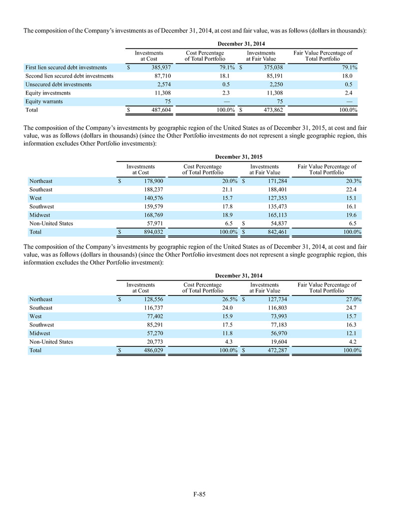investments generally range in size from $1 million to $15 million. Our Middle Market investments are made in businesses that are