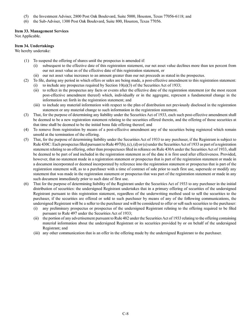 (6) the Sub-Adviser, 1300 Post Oak Boulevard, Suite 800, Houston, Texas 77056.