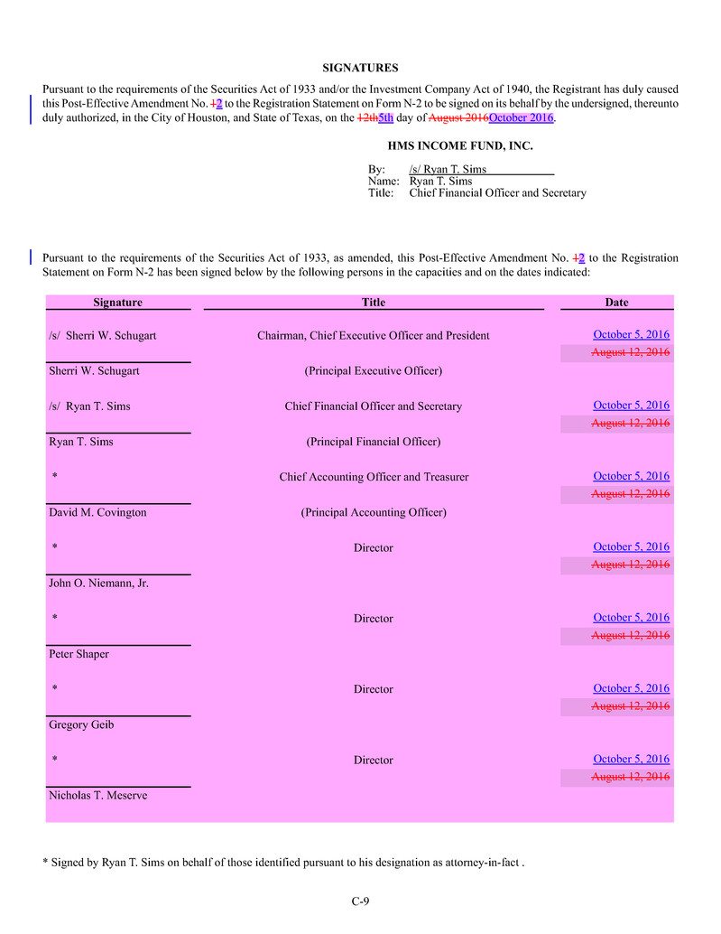 Statement on Form N-2 has been signed below by the following persons in the capacities and on the dates indicated: