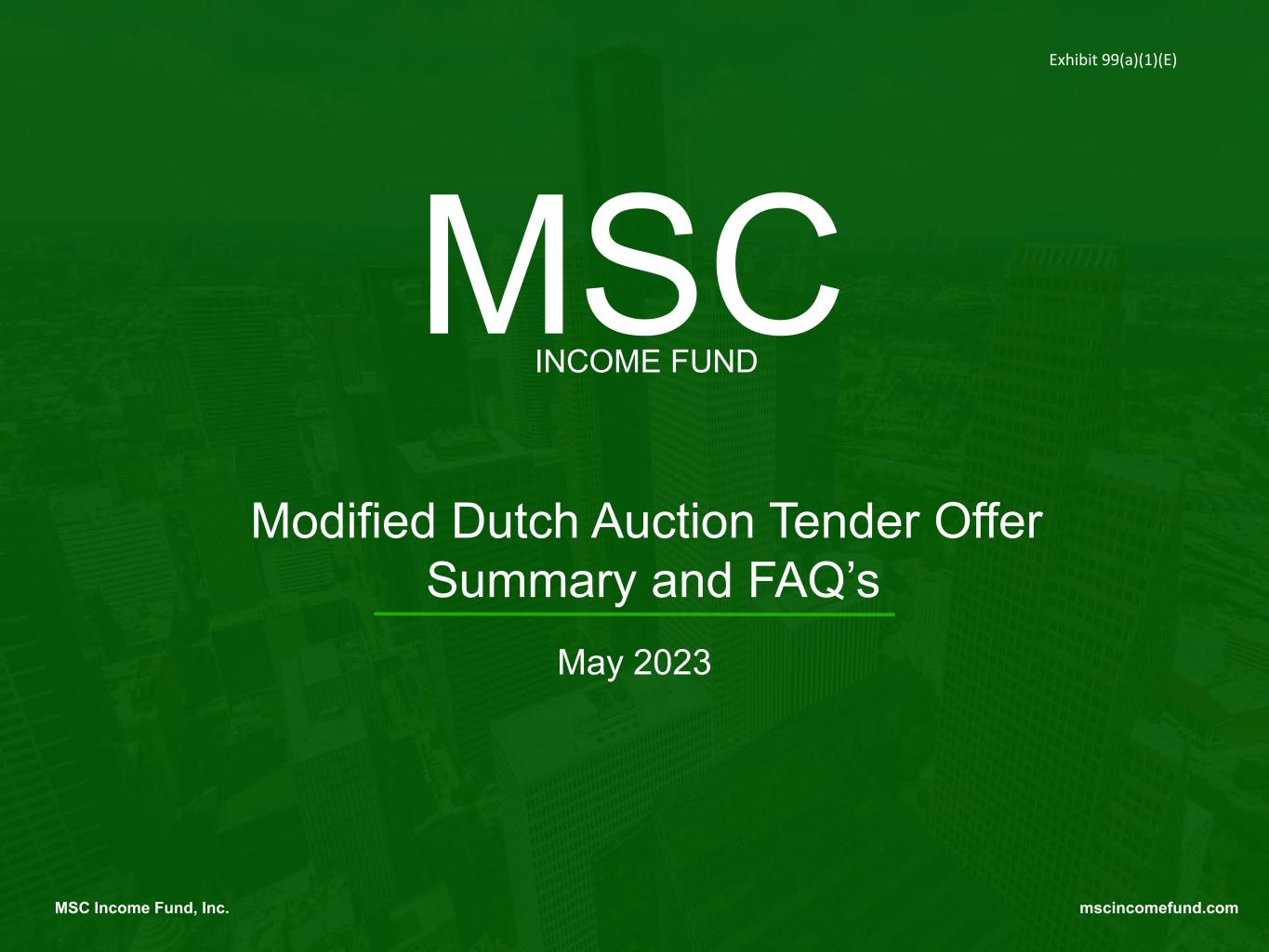 mscincomefund.comMSC Income Fund, Inc. Page 1 Modified Dutch Auction Tender Offer Summary and FAQ’s May 2023 MSC Income Fund, Inc. mscincomefund.com MSC INCOME FUND Exhibit 99(a)(1)(E)