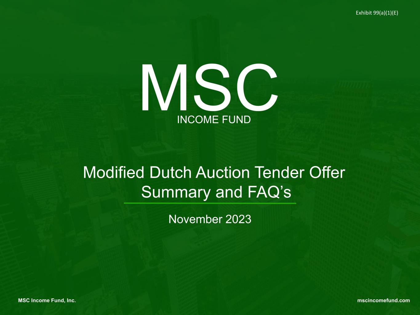 mscincomefund.comMSC Income Fund, Inc. Page 1 Modified Dutch Auction Tender Offer Summary and FAQ’s November 2023 MSC Income Fund, Inc. mscincomefund.com MSC INCOME FUND Exhibit 99(a)(1)(E)